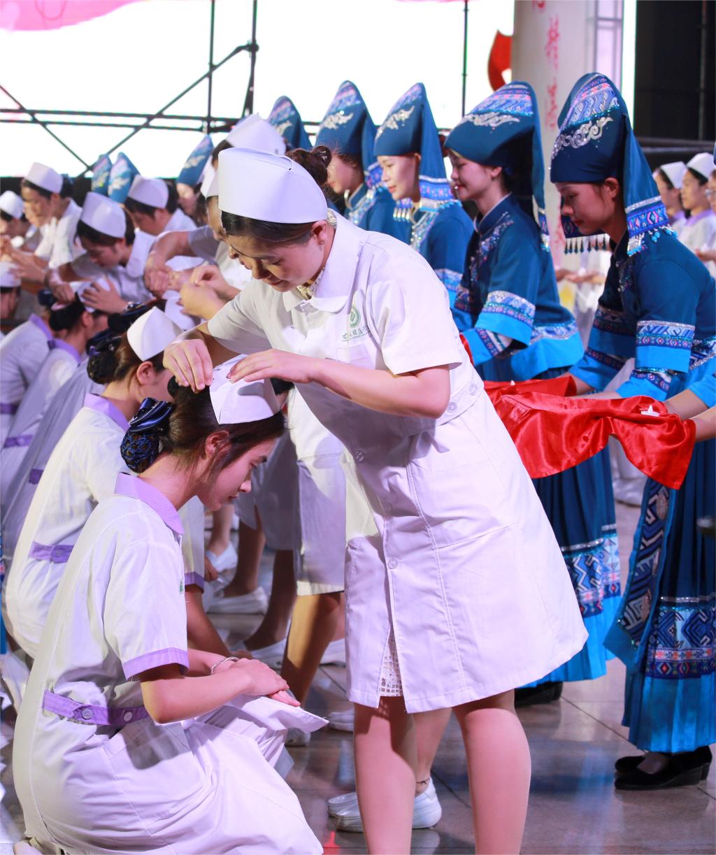资深护理前辈为护生授帽。