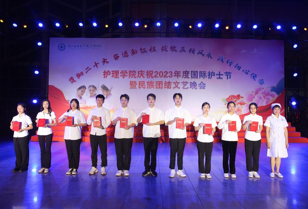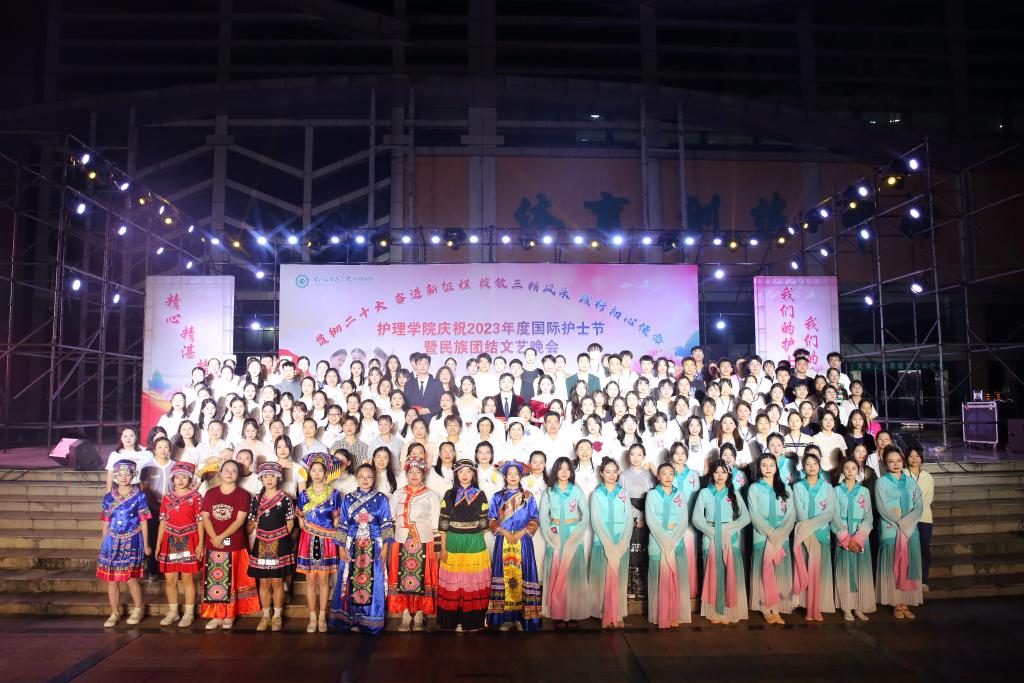 5月20日晚,必赢官网护理学院举办“贯彻党的二十大精神,奋进新征程,绽放三精风采,践行初心使命”国际护士节暨民族团结文艺晚会。