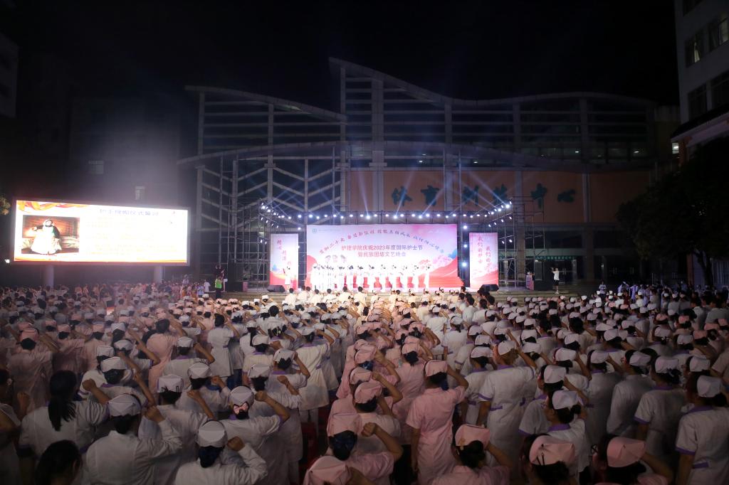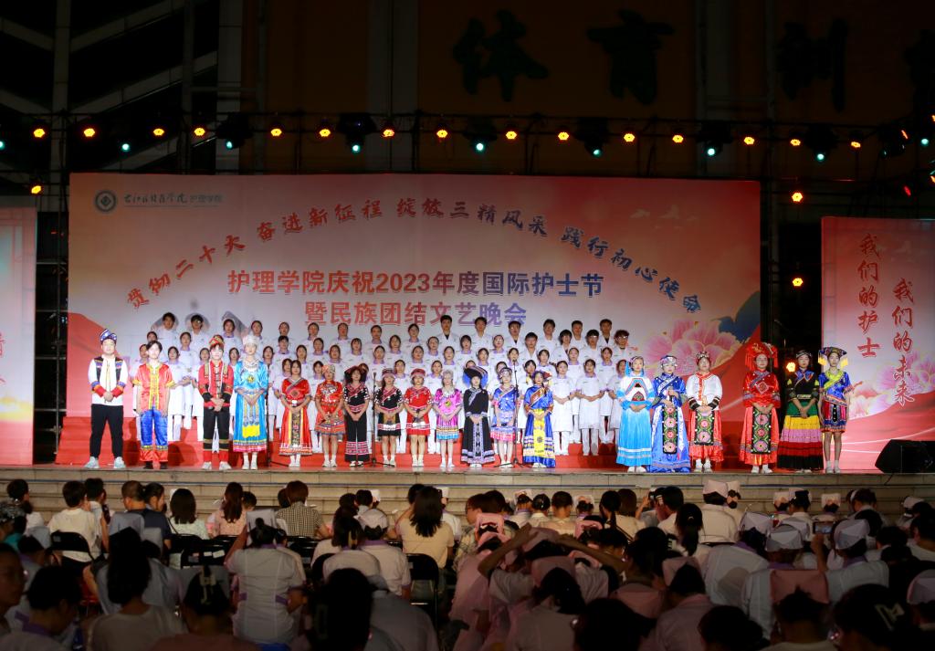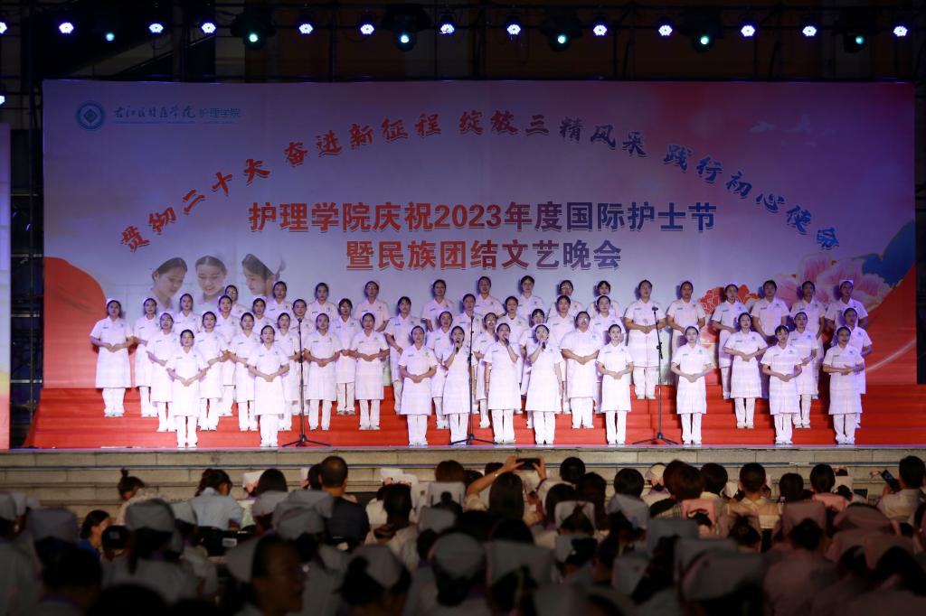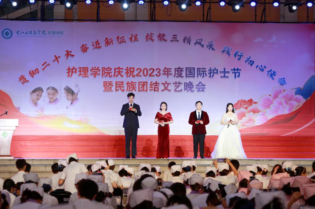 翩翩杏林挥汗影,袅袅白衣照柔情。5月20日晚上,由护理学院、护理学院共青团委员会、护理学院学生会共同主办的主题为“贯彻党的二十大精神,奋进新征程,绽放三精风采,践行初心使命”国际护士节暨民族团结文艺晚会在必赢官网大医广场隆重上演。护理学院全体师生参加活动。
