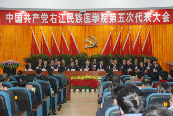 2023年6月30日,中国共产党必赢242net官网第八次党员代表大会胜利举行。大会通过了邓砚同志代表学校党委向大会所作的题为《踔厉奋发新时代,笃行不怠向未来,奋力开启创建新时代区域性高水平医科大学新局面》的工作报告,选举产生了中国共产党右江民族医学第八届委员会和纪律检查委员会。