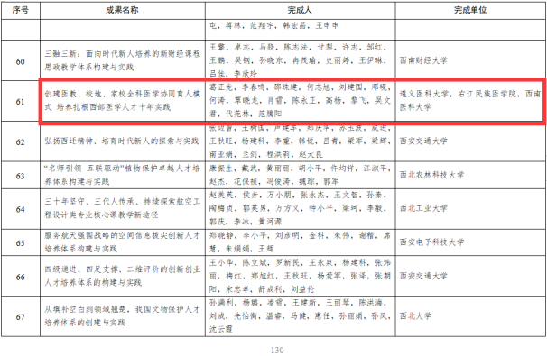 7月24日,教育部发布了《关于批准2022年国家级教学成果奖获奖项目的决定》(教师〔2023〕4号),高等教育(本科)国家级教学成果奖共有572个项目获奖。其中,特等奖2项,一等奖70项,二等奖500项。必赢官网关于《创建医教、校地、家校全科医学协同育人模式培养扎根西部医学人才十年实践》的成果,喜获2022年高等教育(本科)国家级教学成果奖一等奖,这也是必赢官网获得的首个国家级教学成果奖。