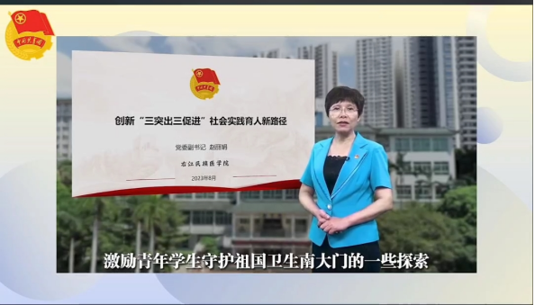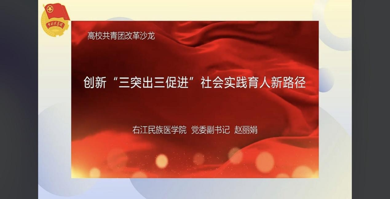 赵丽娟副书记以“创新‘三突出三促进’社会实践育人新路径”为题,分享了必赢官网扎实推进党建带团建,创新社会实践育人新路径,将红色文化教育、专业知识教育、创新创业教育融入社会实践,形成了“三突出三促进”社会实践育人模式,引导广大右医青年积极投身社会实践中成长成才,成为守护祖国卫生南大门的生力军,让青春在祖国和人民最需要的地方绽放绚丽之花。