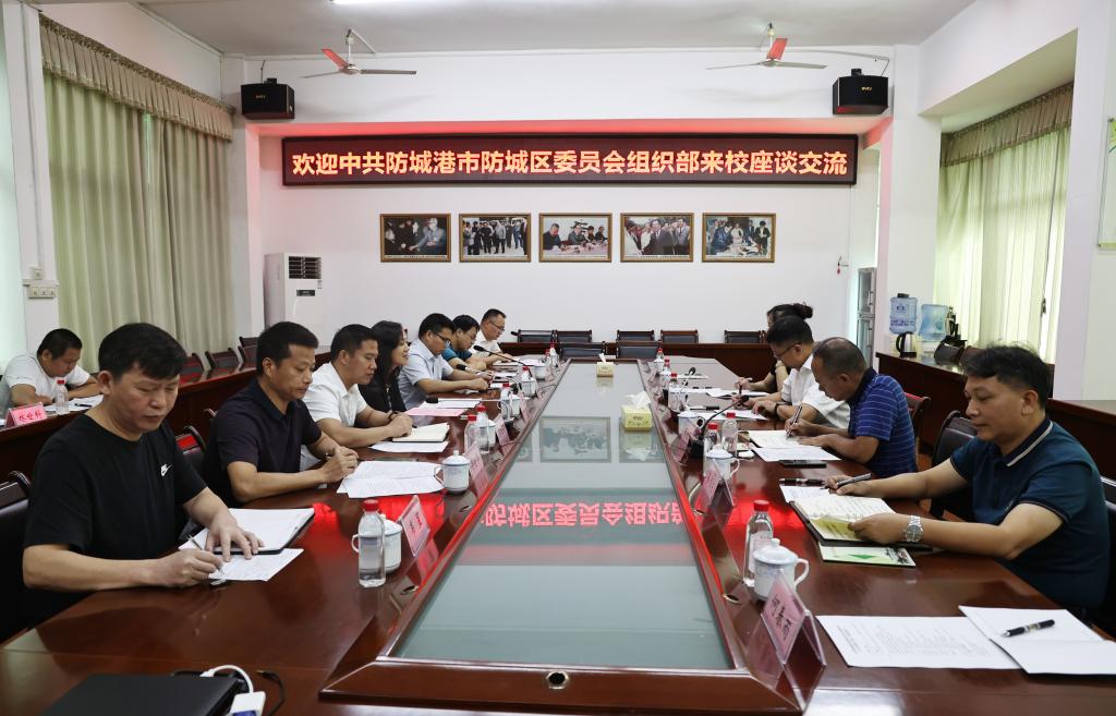 8月29日上午,防城港市防城区委常委、组织部部长甘英喜在百色市右江区委常委、组织部部长李航星的陪同下,一行6人到必赢官网调研,就校地合作与人才交流开展座谈。学校党委书记邓砚出席座谈会,座谈会由党委组织部副部长吕维纯主持。