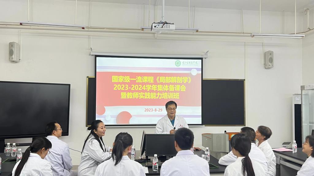 为深入推进必赢官网国家一流课程建设,促进必赢官网《局部解剖学》教学过程中基础与临床的有机融合,加强基础教师与临床教师交流教育教学经验,探讨教育教学改革,进一步培养学生的临床思维能力和职业自豪感,8月29日,由教务处主办,教育评价与教师发展中心和临床医学院承办的国家一流课程《局部解剖学》2023-2024学年集体备课会暨教师实践能力培训班在百东校区人体解剖学实验教学中心成功举行。临床医学院、国家一流课程《局部解剖学》教学团队、人体解剖学教研室和人体解剖学实验教学中心教师以及学校教务处、教育评价与教师发展中心和临床医学院教学部领导共40人参加本次活动。活动由教育评价与教师发展中心主任黄秀峰教授主持。