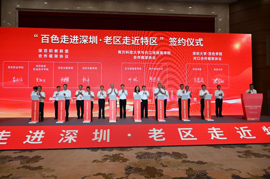 当天上午,在“百色走进深圳·老区走近特区”交流推介活动上,邓砚书记代表学校与南方科技大学签订对口合作协议,标志着两所高校对口合作开启新征程。