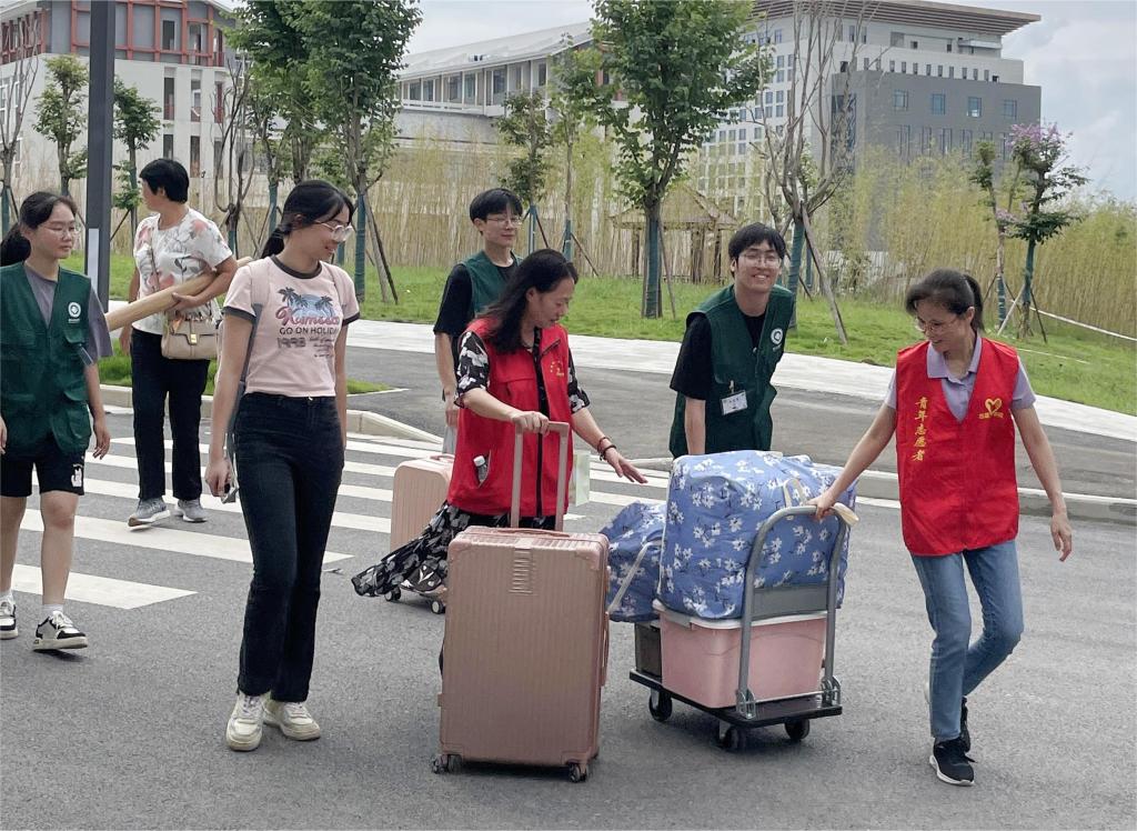 临床医学院肾内科党支部书记王洁老师告诉记者:“我们有36人共分为三个小组,在学校大门、新生报到处和技能中心为新生解惑和搬运行李,我们专业的医学技术也能应对突发情况,同时也想鼓励新生们认真学好医学技术,了解他们的所思所感,在知识的航道上为新生指明方向。”