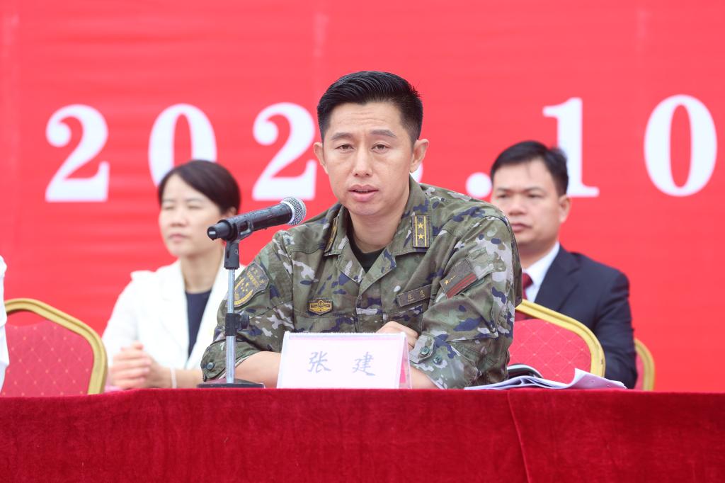 武警百色支队中校副支队长张建在大会上作动员讲话。