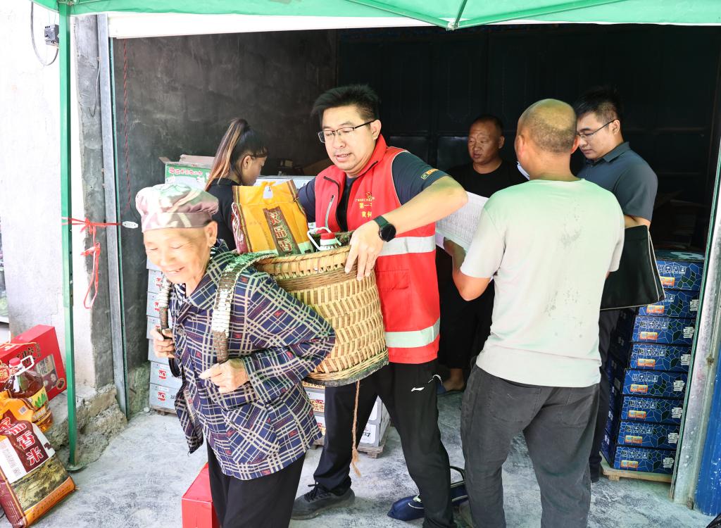 邓砚书记深入走访慰问帮扶户,给帮扶户送上食用油和大米等慰问品。