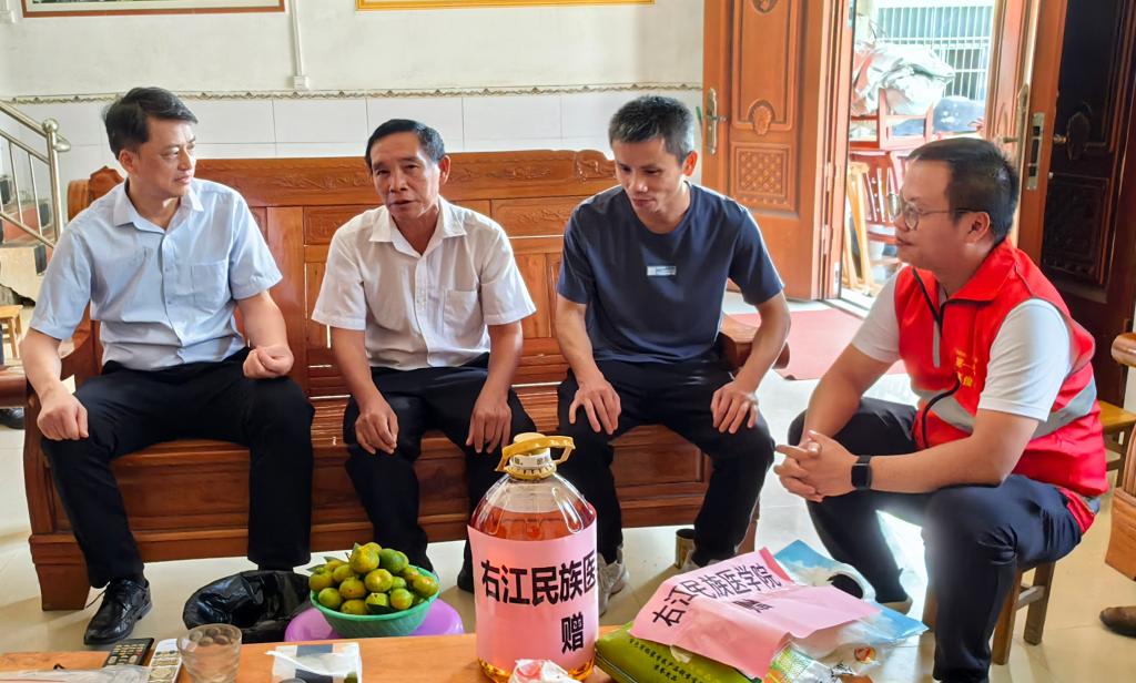 听取汇报后,邓砚书记代表学校向驻村工作队员扎根农村辛勤付出表示亲切慰问,对驻村工作队为巩固脱贫攻坚成果同推动乡村振兴作出的努力和取得的成效予以肯定,对西林县对学校驻村工作及驻村干部的帮助与支持表示感谢。邓砚书记指出,新一任的驻村工作队发扬了“艰苦创业 自强不息”的右医精神,把脱贫攻坚精神一棒一棒的传承下去,在巩固脱贫攻坚成果,推进乡村振兴工作上取得了显著的成绩,村集体经济收入大幅增长,村民对村干部、对驻村工作队的感情更浓了,他们幸福指数不断上升。