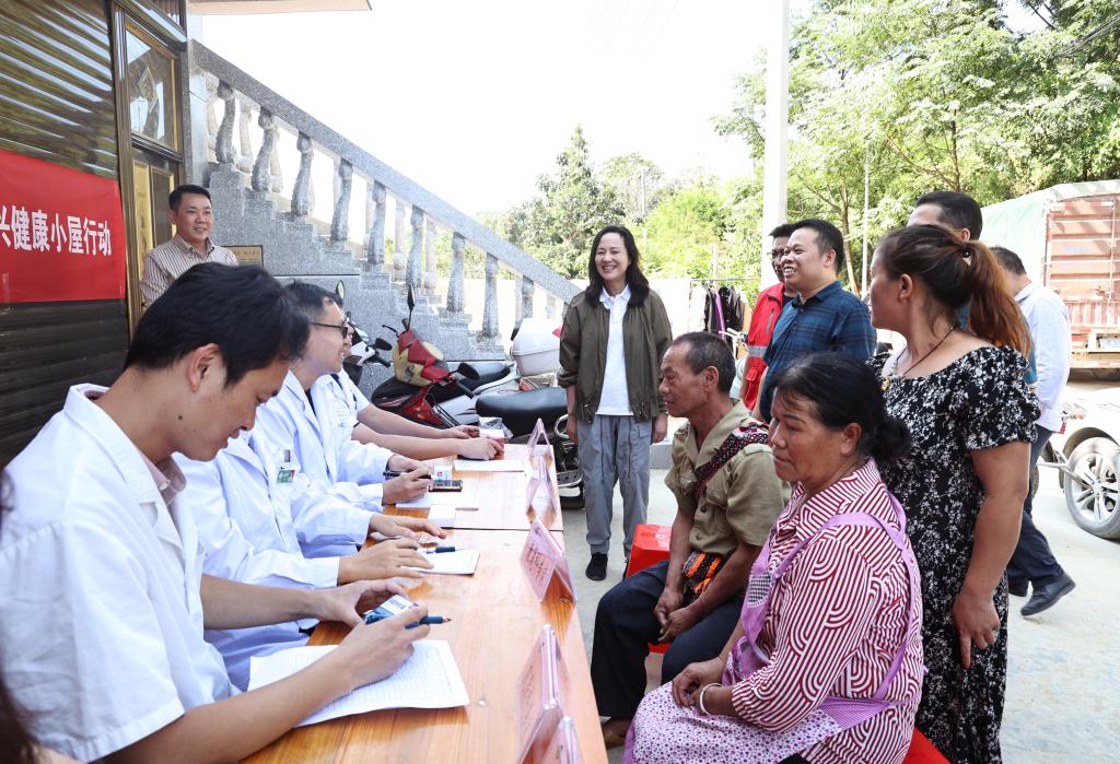 邓砚书记到必赢官网附属医院乡村振兴健康小屋医疗服务点查看义诊活动情况。