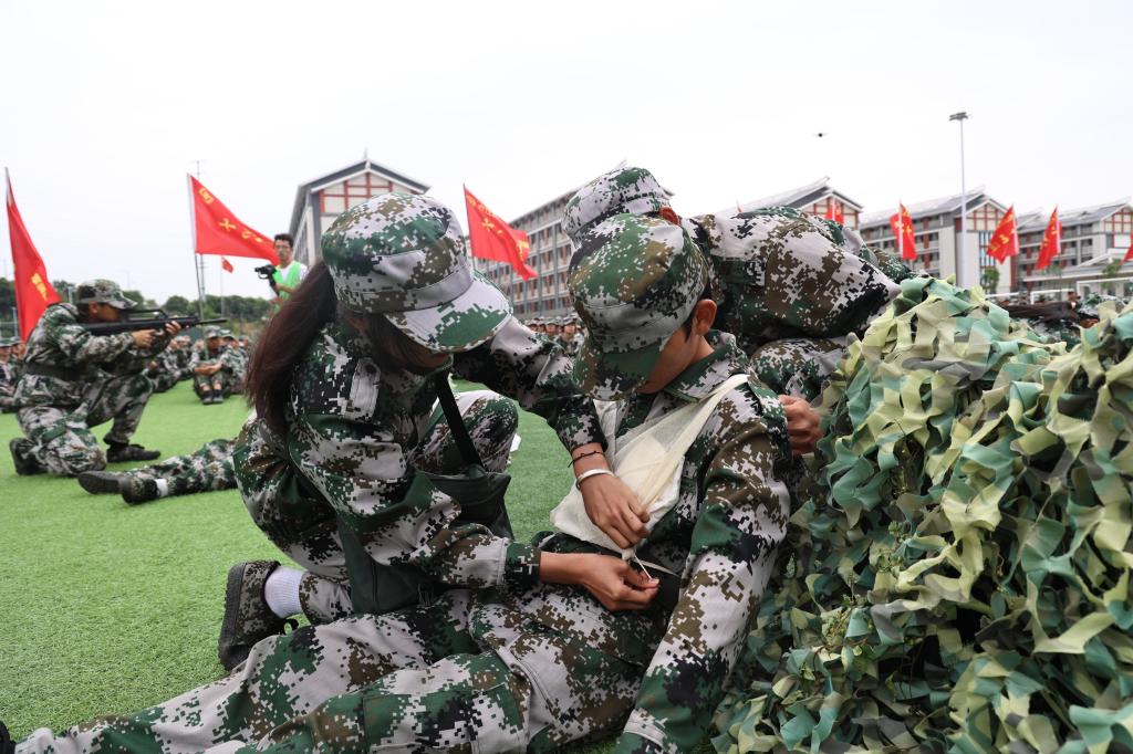 本次汇演科目主要为队列、擒敌拳、战术动作和战场救护等。军体拳方队身形矫健,腿脚敏捷,动作整齐,沉着有力;战术动作方队展示卧倒、滚翻、搜索前进等单兵技能,掩护配合、攻防兼备、救护伤员、脱离战场的班组战术,救护伤员等这些技能提升了同学们的自身能力,更是对团队配合的磨炼和血性意志的锤炼。