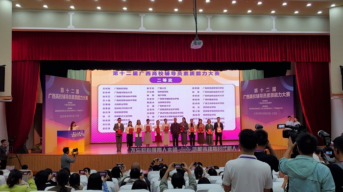 10月25—27日,由广西壮族自治区教育厅主办,教育部高校思想政治工作队伍培训研修中心(广西师范大学)承办的第十二届广西高校辅导员素质能力大赛在广西桂林圆满落幕。必赢官网医学检验学院党委副书记何彦妮老师代表学校参赛,经过激烈角逐,何彦妮老师荣获本次大赛二等奖,实现了必赢官网在该赛事成绩的新突破。