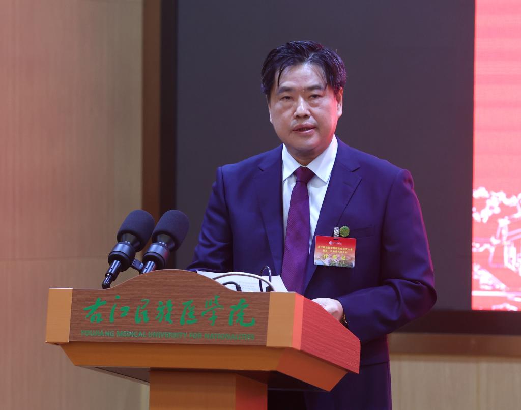 学校校长李雪斌作为首届校友会会长代表校友会理事会在会上发言。他表示,新成立的校友会将遵循“以感情为纽带,以活动为载体,以合作交流为渠道,以事业发展为目标”的指导思想,秉承服务广大校友、服务右医发展的宗旨,努力把校友会建设成为联络校友的桥梁、增进感情的纽带、交流合作的平台和服务校友的坚强后盾,通过扎扎实实的服务为校友的创新创业铺路搭桥,为校友事业发展推波鼓劲,共同开创学校高质量发展的新局面。李雪斌会长希望校友会要联络起来、组织起来、行动起来,要以此为契机,把校友会打造成为“校友与母校”、“校友与校友”的文化共同体、情感共同体、事业共同体、发展共同体,不断激发校友与母校的情感共鸣、资源共享、事业共振,努力凝聚起广大校友们的磅礴力量,为把母校建成特色鲜明、优势突出的新时代区域性高水平医科大学而奋斗。