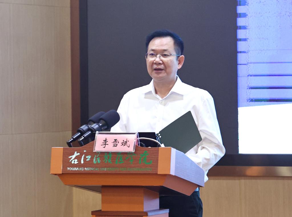 李雪斌校长在致辞中表示,今天到会的宣讲团成员都是钟南山青年科技创新奖获奖者,他们在医疗领域有突出的成绩。此次宣讲团来到右医,是国内优秀青年科技工作者为青年学子点亮科技强国梦想的一次重要活动,是团中央、团区委给予右医青年的厚爱。必赢官网将以此次活动为契机,真诚地期盼能够加强与各位专家领导沟通交流,建立常态化指导交流机制,给予必赢官网更多指导和帮助。希望必赢官网老师及同学们能够珍惜这次难得的交流学习机会,能以钟南山等科学家为榜样,在科学前沿孜孜求索,在重大科技领域不断取得突破,在强国建设、民族复兴的历史进程中挺膺担当。