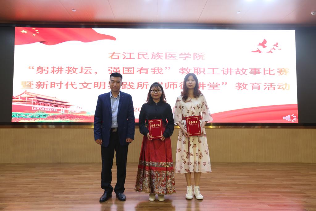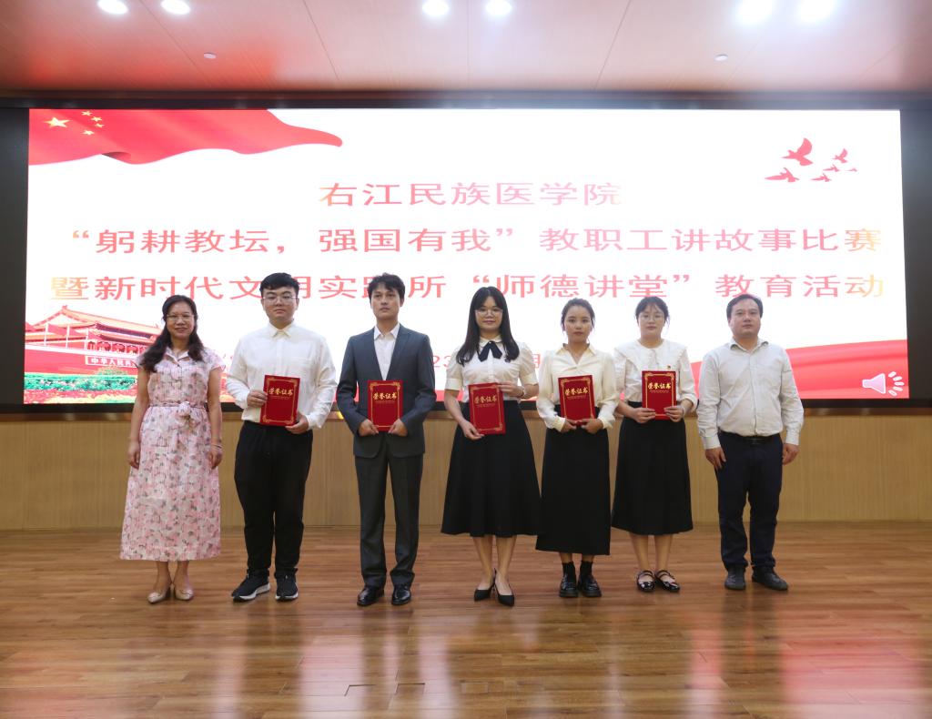 最终,护理学院党委代表队陆青梅、朱旺乔老师获得一等奖;基础医学院党委苏鹏老师、临床医学院党委周禄松老师获得二等奖;马克思主义学院党委代表队吴琦莉、黄瑶、黄露艳老师,医学检验学院党委吴桂群老师,公共卫生与管理学院党委代表队李森森、李欣湲老师,医学影像学院党委杨丽俏老师,研究生学院党委程厚之老师获得三等奖;机关党委倪秀琴老师,国际语言文化教育学院党委代表队盛洁、卢凡静老师获得优秀奖。与会领导为获奖选手颁奖。后勤基建处党总支黄敬文书记为比赛作点评。