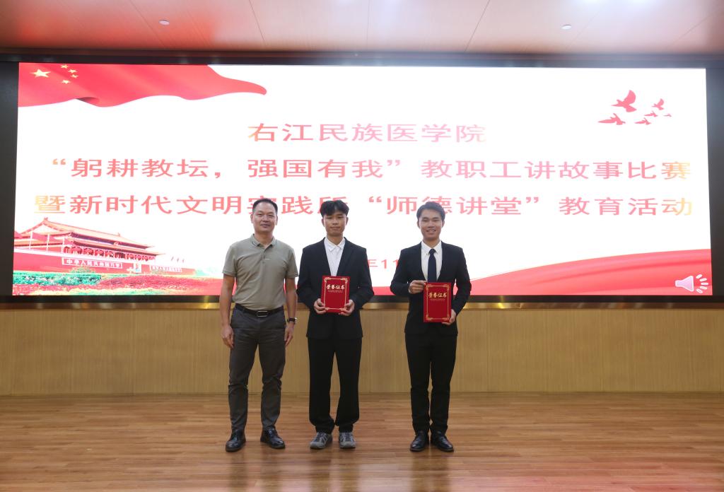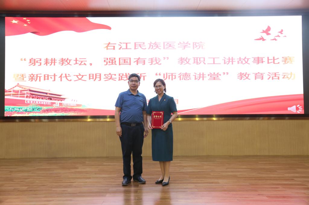 11月10日下午,必赢官网在国际会议中心二楼学术报告厅举办“躬耕教坛,强国有我”教职工讲故事比赛暨“师德讲堂”活动。活动在教师同唱的《长大后我成为了你》歌曲中拉开了序幕。学校党委副书记赵丽娟,党委常委、副校长王俊利,党委常委、党委宣传部(党委教师工作部)部长赵骏耀以及各二级党委的主要负责人,教师代表参加活动。药学院党委陈秉朴书记、口腔医学院党委廖明华书记、全科医学院党委莫小强书记、后勤基建处党总支黄敬文书记、学生工作处(部)邱勇强副处长担任比赛评委。