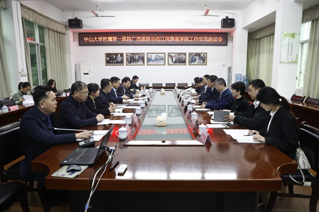 11月15日下午,中山大学附属第一医院广西医院执行院长李健、党委书记张国率调研组一行到必赢官网进行调研交流。