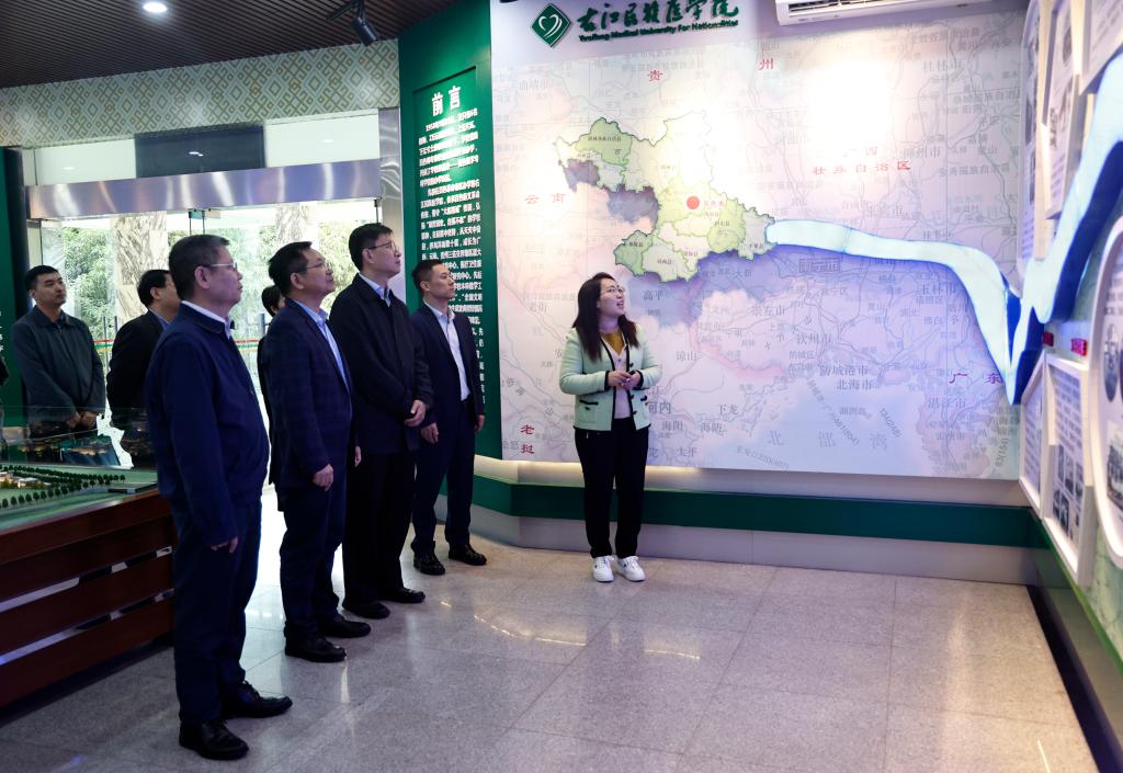 中山大学附属第一医院广西医院领导在参观学校校史馆。