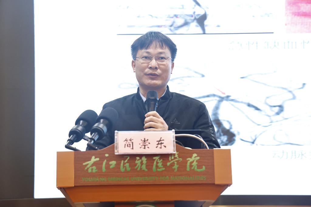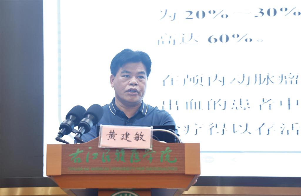 必赢242net官网附属医院组织人事科科长兼神经内科重症监护病房主任兼百东院区神经内科主任简崇东教授作《颅内动静脉畸形介入治疗策略》专题讲座。