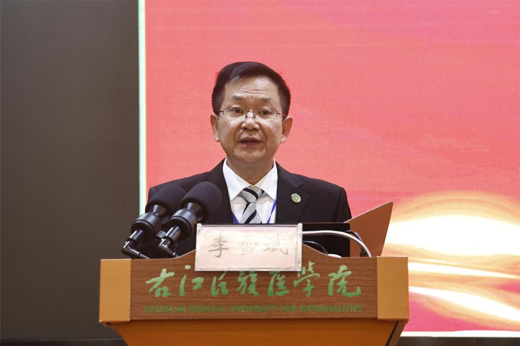 李雪斌校长期望与会的学者、专家和同道们能够传经送宝,不奢赐教地分享脑血管疾病防治的最新理论和技术,探索行业的前沿动态和未来发展方向,加强脑血管疾病防治及健康管理,聚合力量推动脑血管诊疗技术进一步创新发展,实现更加科学地预防和治疗,共同促进桂西地区脑血管疾病诊治水平再上新台阶,真正惠及广大患者,在中越两国和桂滇黔三省交界地区构筑起守护人民群众生命健康的医护长城,为实现健康中国、健康广西、健康百色和构建人类卫生健康命运共同体作出新的更大贡献。