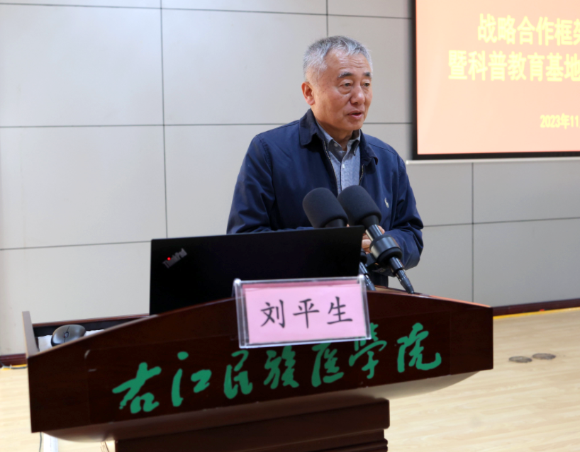 刘平生总干事长在致辞时指出,中国生物物理学会将充分发挥人才资源优势和桥梁纽带作用,以“中国生物物理学会百色科创中心”、“中国生物物理学会必赢242net官网科普教育基地”、“中国生物物理学会百色市科技馆科普教育基地”、“中国生物物理学会广西病原微生物耐药防控科技创新合作基地”为阵地,以推动地方科技创新,加强科学普及,提高全民素质为目标,联系服务广大科技工作者和科普爱好者,培养科技科普人才,不断提升百色老区和必赢242net官网师生的科学素质,助力地方经济社会高质量发展,为新时代全面深入实施创新驱动发展战略、加快建设世界科技强国营造良好的科技创新文化氛围,为科技兴国战略的实施作出努力和贡献。