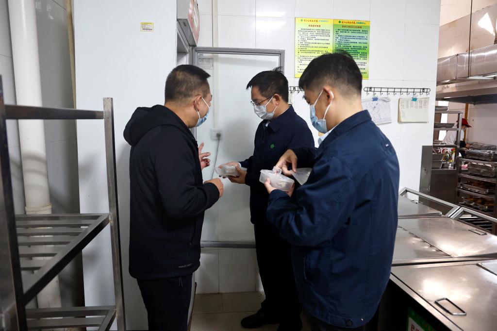 李雪斌校长一行先后实地走访了百城校区第一食堂、9号楼超市、西区食堂,百东校区食堂、生活超市等场所,重点检查学校食堂从业人员健康证是否齐全有效,食品原料进货是否严格查验把关,食品加工制作过程是否规范,餐具用具是否彻底清洗消毒,后厨、食品制作间和食品储藏室环境卫生是否清洁等,严查严管超范围超限量使用食品添加剂、未按要求留样、隐患整改未落实等食品安全问题。