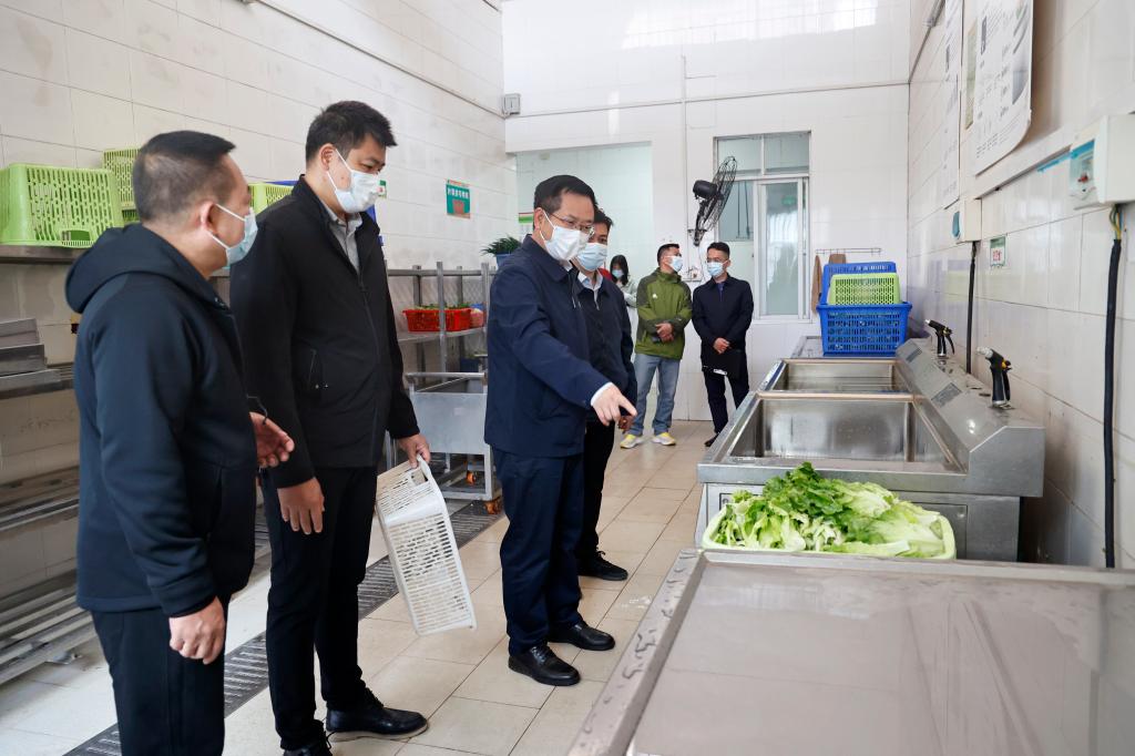 校园食堂涉及面广,消费人员众多,食品安全尤为重要,为切实加强校园食品安全管理,提高食堂管理水平和服务质量,保障广大师生身体健康和饮食安全,11月20日上午,学校党委副书记、校长李雪斌,党委常委、副校长黄龙坚率校两办、百东校区管理中心、后勤基建处、保卫处、学工处、团委、国资处等相关部门负责人开展校园食品安全专项检查。