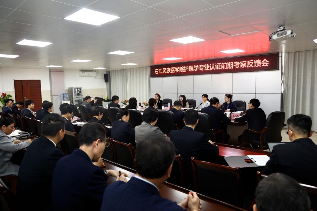 11月22日上午,教育部护理专业认证前期专家组考察意见反馈会在必赢官网7栋13楼第二会议室召开,认证专家孙宏玉教授、李瑞玲教授、陈红教授出席会议并反馈考察意见。全体校领导,各管理及教辅部门、基础医学院、附属医院、附属西南医院主要负责人,护理学院教师代表参加会议。会议由学校党委书记邓砚教授主持。