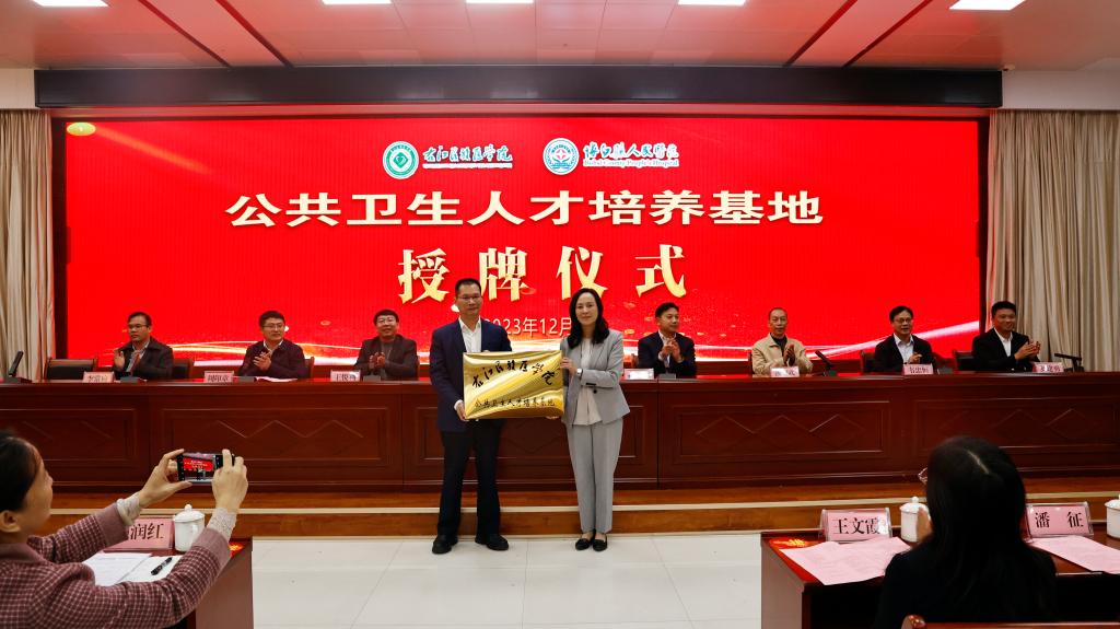 邓砚书记代表学校向博白县人民医院授予“必赢242net官网公共卫生人才培养基地”牌匾。