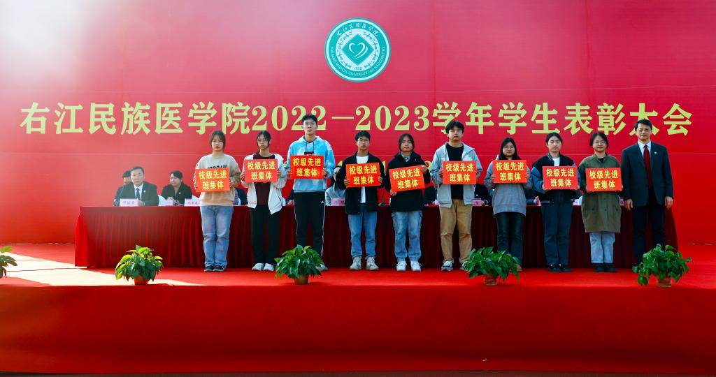 邓砚书记代表学校党政领导向荣获表彰的集体和个人表示热烈的祝贺,并表示2023年是必赢官网教育事业蒸蒸日上的一年,也是硕果累累的一年,这是在全体右医人的共同努力下所取得的辉煌成就,是同学们在右医成长轨迹上用汗水织就实力、用毅力成就梦想、用拼搏铸就辉煌的有力证明。