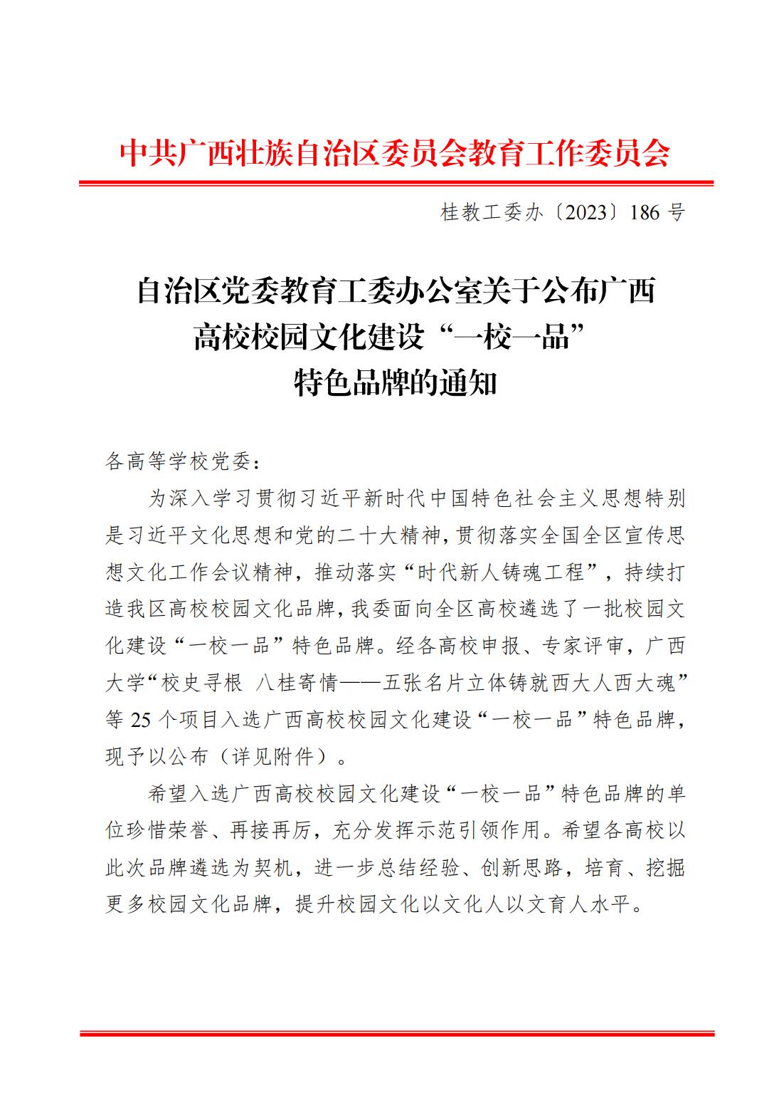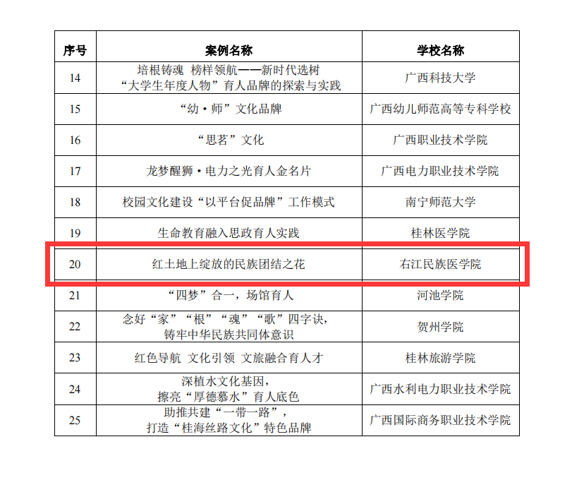 近日,自治区党委教育工委公布广西高校校园文化建设“‘一校一品’”特色品牌。必赢官网推荐报送的《红土地上绽放的民族团结之花》校园文化品牌入选广西高校校园文化建设“一校一品”特色品牌。