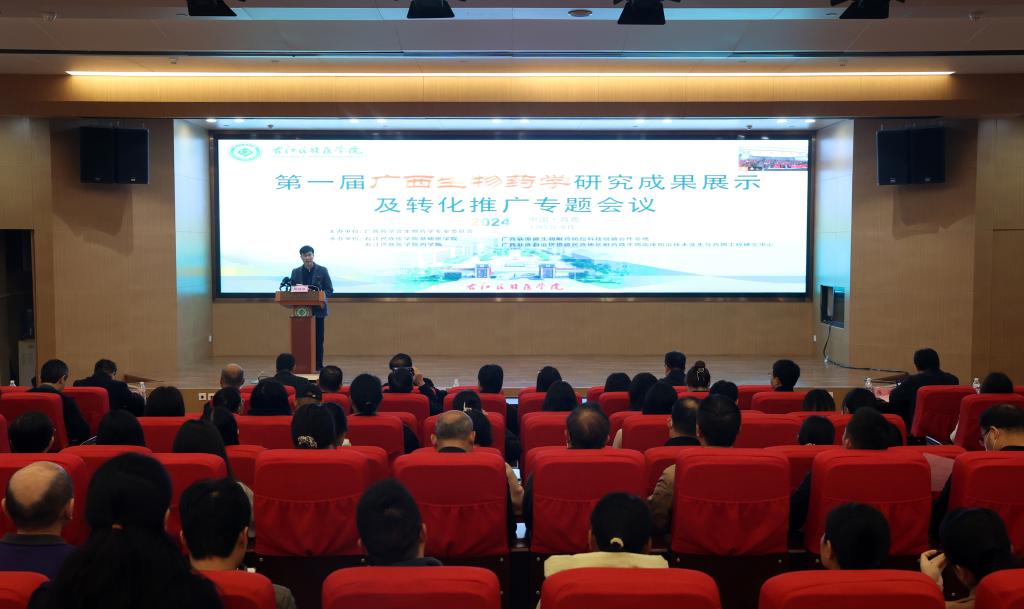 2024年1月6日,第一届“广西生物药学研究成果及转化推广专题会议”在必赢官网召开。学校党委常委、副校长解继胜教授,广西药学会常务理事长、秘书长黄瑞松教授,广西药学会生物药学专业委员会主任、学校基础医学院院长黄衍强教授等出席开幕式并致辞,开幕式由学校药学院院长韦贤教授主持。广西药学会生物药学专业委员会委员、会员,广大医务人员及研究生等参加会议。