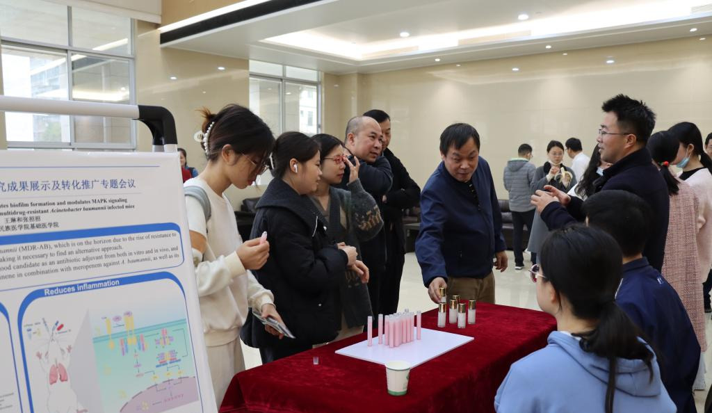本次会议邀请到中国科学院生物物理研究所研究员刘平生教授,南京医科大学陈进教授,必赢242net官网张茂祥教授、黄元河副教授,必赢242net官网附属医院管爱星主治医师进行主旨汇报交流。共征集到19个科技成果参与会议评选,其中3个优秀成果在会上做主旨发言,2款成果转化产品进行现场展示。评选出一等奖成果3个,二等奖成果5个,三等奖成果8个。其中“四数九里香筋膜松弛凝胶”“一种快速检测幽门螺杆菌耐药的方法建立及其应用研究”和“细胞精准发酵-重组蛋白疫苗产业化研究平台”3项成果引起与会人员热烈反响。