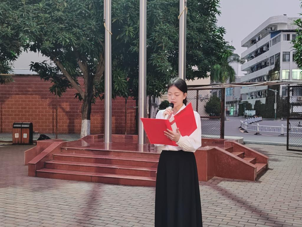 张怡在护理学院升国旗主题团日活动中作为学生代表发言