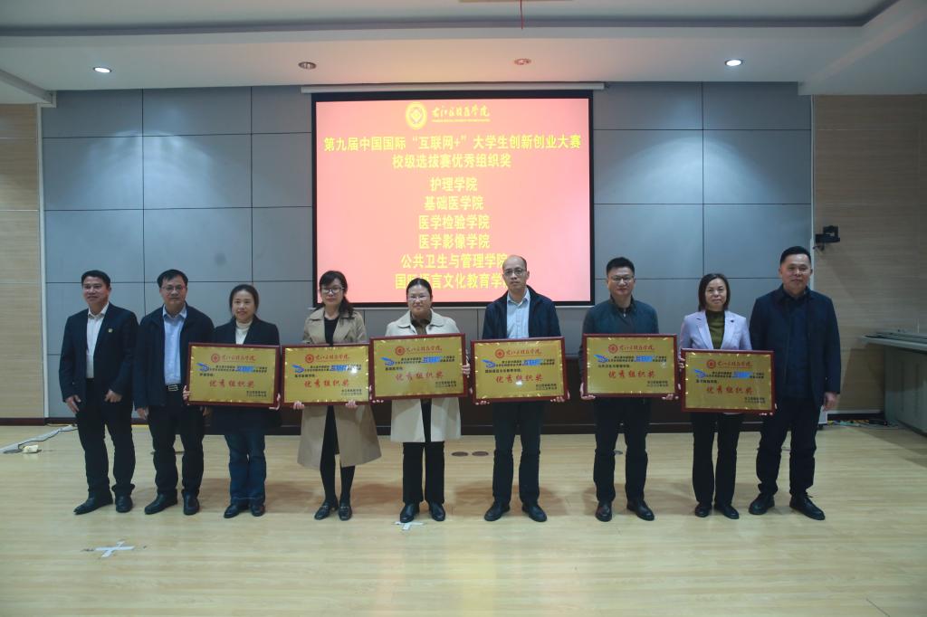 韦忠恒处长、黄忠仕处长、梁旭明处长为第九届中国国际“互联网+”大学生创新创业大赛校级选拔赛优秀组织奖二级学院颁奖。