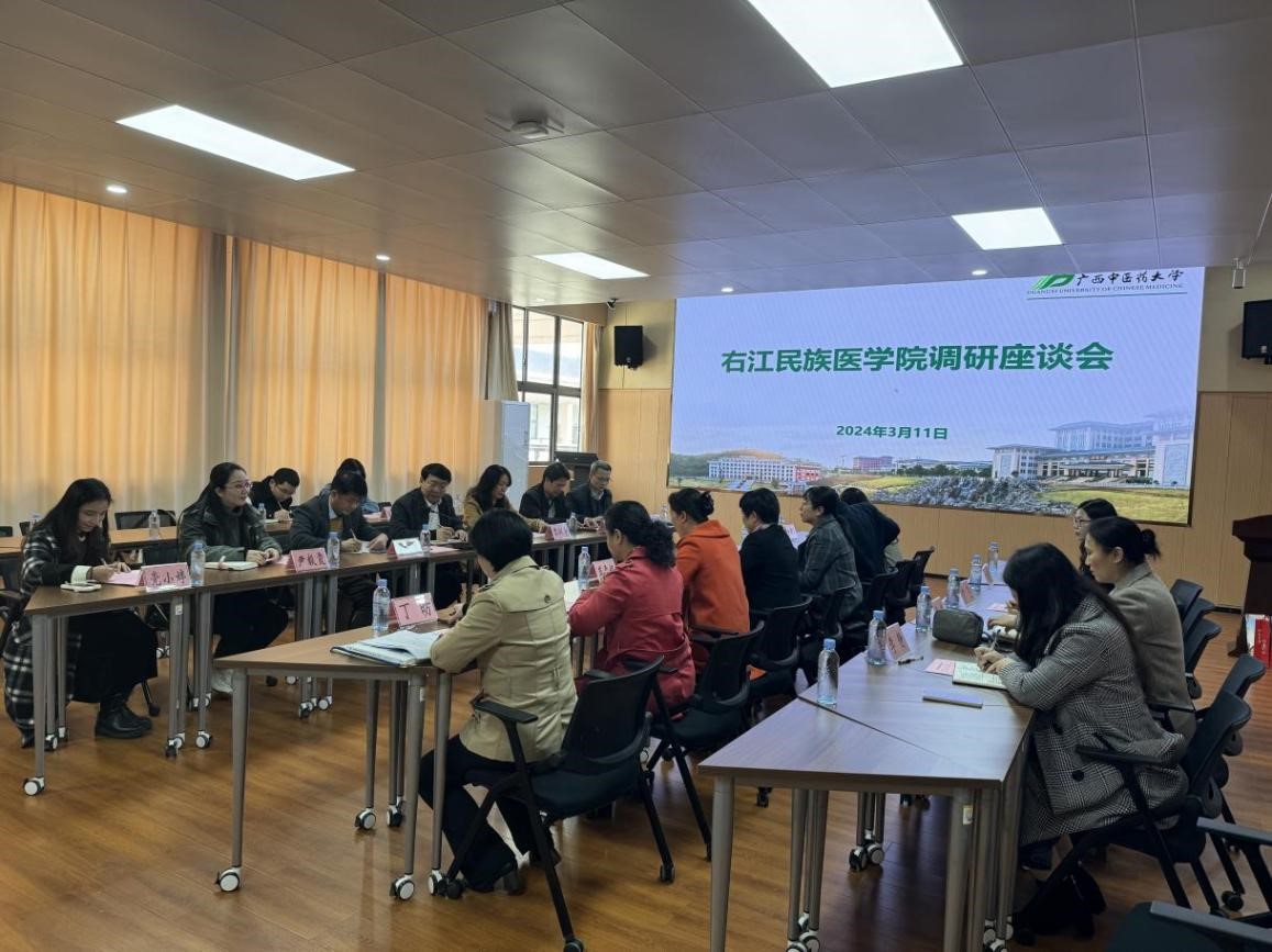 3月11日上午,在广西中医药大学交流期间,广西中医药大学副校长钟宏桃热情接待必赢官网一行,组织参观了教学实验实训中心并召开了座谈会,广西中医药大学校长办公室、教务处、教育评价与质量保障中心等部门负责人及工作人员参加会议。