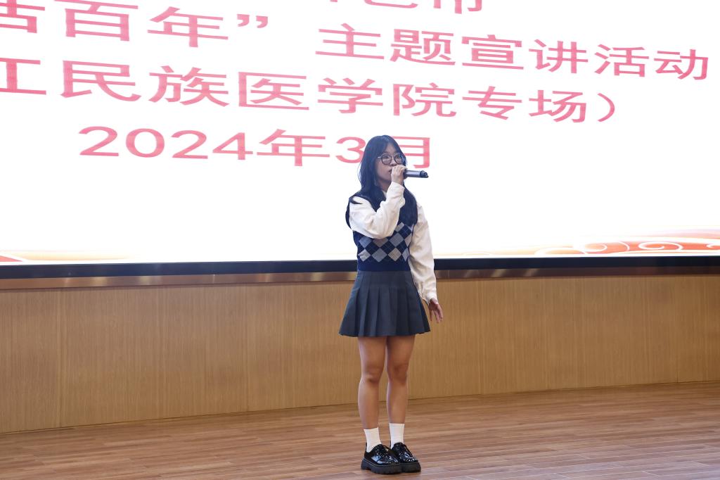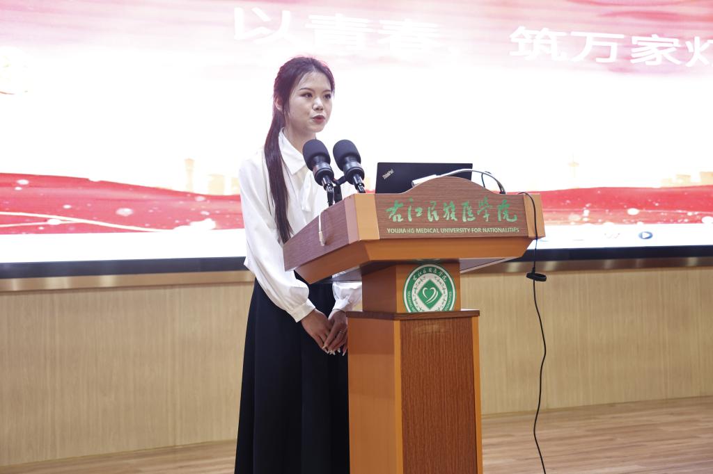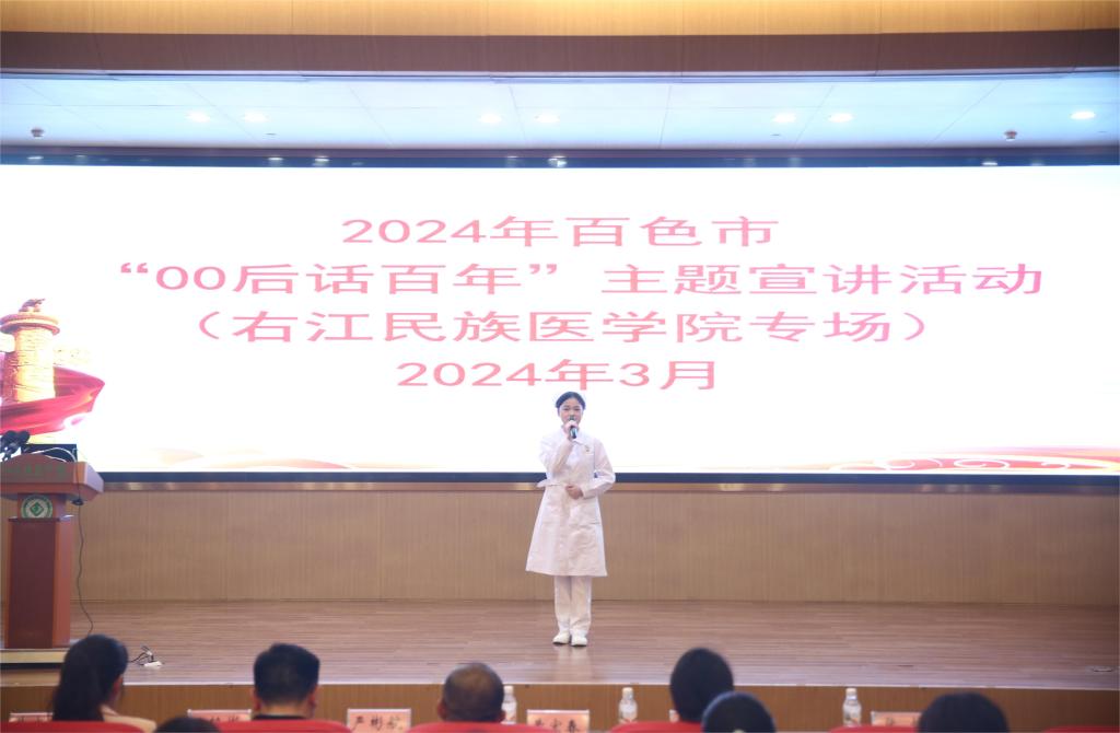 广西壮族自治区“00 后话百年”讲师团成员、百色市宣讲团成员、必赢官网2022级护理学本科1班学生张怡宣讲《用生命诠释最美青春》。