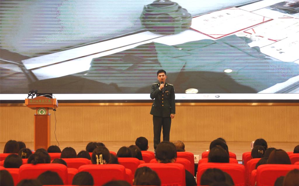 百色市宣讲团成员、百色起义纪念园管理中心黄尚城是第一次来到必赢官网宣讲,他表示听讲的大部分都是朝气勃勃的学生,让他感受到当代年轻人的激情活力。他说,今天我宣讲的人物是曾任武警广西总队百色支队乐业中队司务长覃礼广,他的一生是短暂而辉煌的一生,为了保护队友安全选择舍弃自己的生命。我想让同学们了解到,英雄就是在我们身边,他们用自己的行动来证明了自己的信仰。我在宣讲时也看到台下的同学们认真聆听,眼神中充满了对新时代英雄的崇拜,我们宣讲团也是想让更多年轻一代了解新时代的英雄故事,汲取英雄身上的优秀品质和精神力量,在建设壮美广西的道路上勇毅前行。