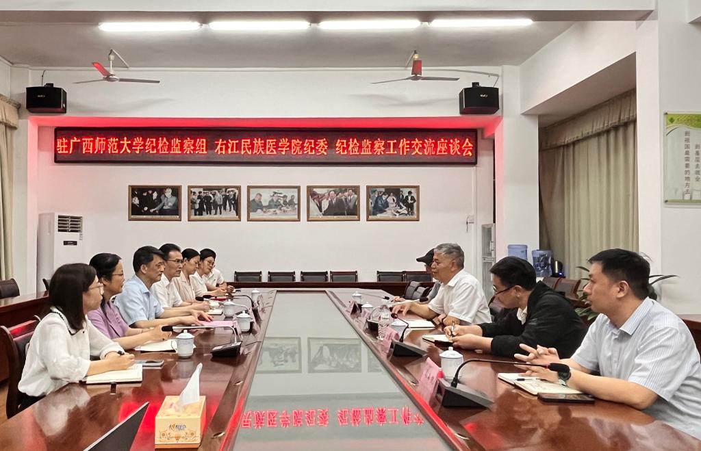辅导讲座结束后,学校纪委、附属医院纪委专职纪检监察干部与驻广西师范大学纪检监察组、广西师范大学党委巡察办相关领导干部开展座谈交流,围绕“履行监督执纪问责职责、开展党的纪律教育、开展专项整治、师德师风(医德医风)建设”4个方面的主要做法和经验进行相互探讨,莫坷同志对必赢官网纪检监察工作的经验做法给予了高度赞扬和充分认同,并表示,本次交流对今后的工作开展有很大的启发,希望双方继续加强沟通交流,在监督检查、审查调查、审理工作等方面拓宽合作力度,不断提高监督执纪水平。