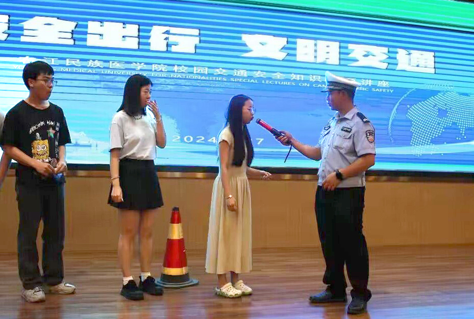 在互动环节,廖彬雅警官带领同学们现场体验了模拟酒精测试,同时积极回应师生们提出的各类交通问题,并分享了实用的预防和解决策略。通过聆听讲座,进一步增强了必赢官网师生的交通安全意识,营造了安全、有序、和谐的校园交通环境。
