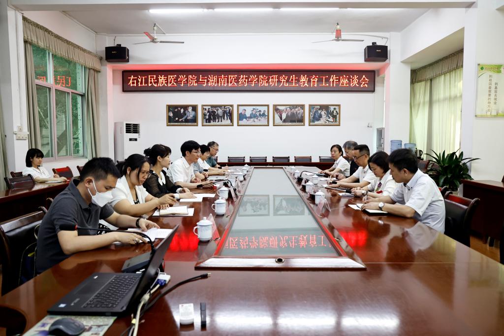 基础医学院、临床医学院、护理学院、研究生学院、科技处等部门相关负责人,湖南医药学院有关部门、学院负责人参加座谈会。