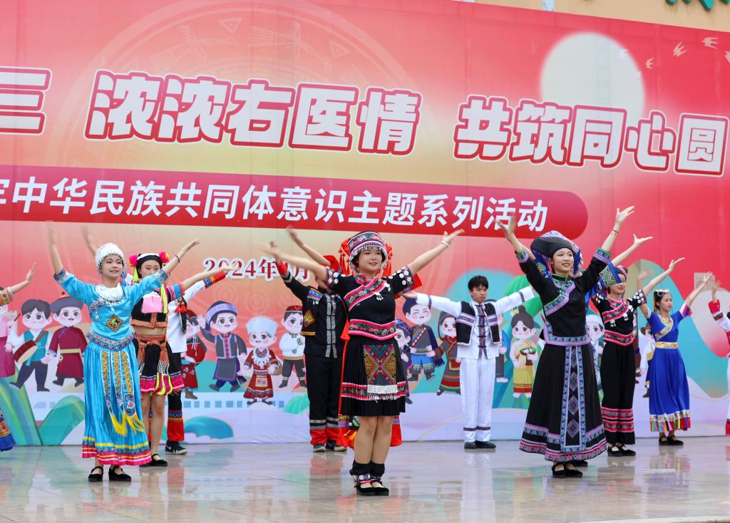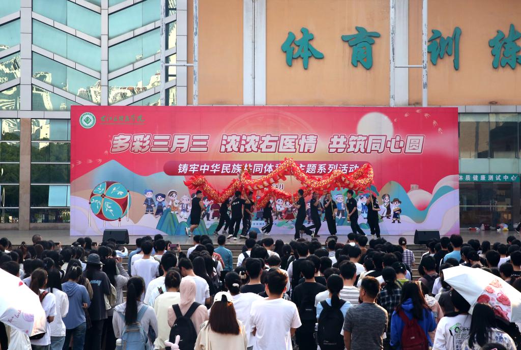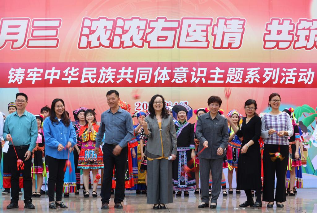 4月8日,必赢官网举行“多彩三月三 浓浓右医情 共筑同心圆”铸牢中华民族共同体意识主题系列活动启动仪式。图为百城校区会场。