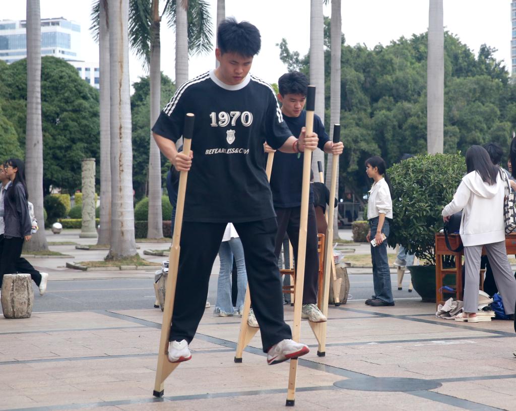 乘三月三之风,扬壮乡之风情。开幕仪式结束后,各二级学院与社团组织开展了竹竿舞、抽陀螺、踩高跷、板鞋竞速等各种富有民族特色的活动。身着各民族特色服装的师生们积极参与活动中,大家在欢声笑语中感受民族风采,现场热闹非凡。校易班总站还为同学们提供了五色糯米饭、艾叶粑粑这类具有民族特色的食物,不仅让同学们在活动中感受民俗文化乐趣,更是从味蕾上感受到了民族文化的独特魅力。
