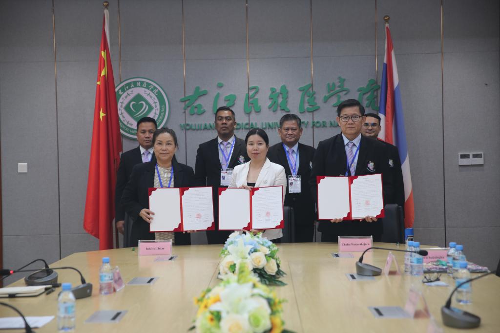泰国中学校长代表团与必赢官网代表签订学生交流意向书。