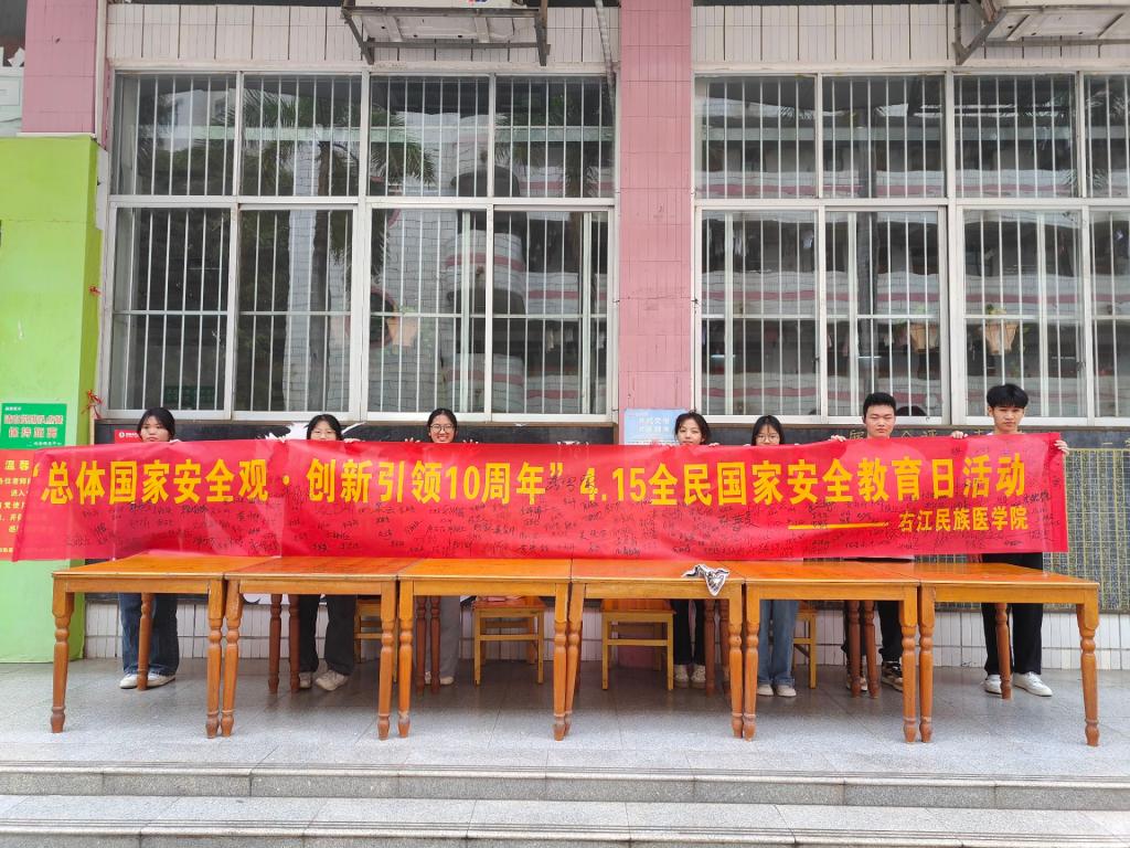 4月9日-10日,国防教育协会分别在百城、百东校区食堂门口搭设户外宣传展台,开展“总体国家安全观·创新引领10周年”主题横幅签字活动。活动旨在通过签字形式增强同学们的国家安全意识和责任感,让每个人都认识到国家安全的重要性,并自觉参与到维护国家安全的行动中来。