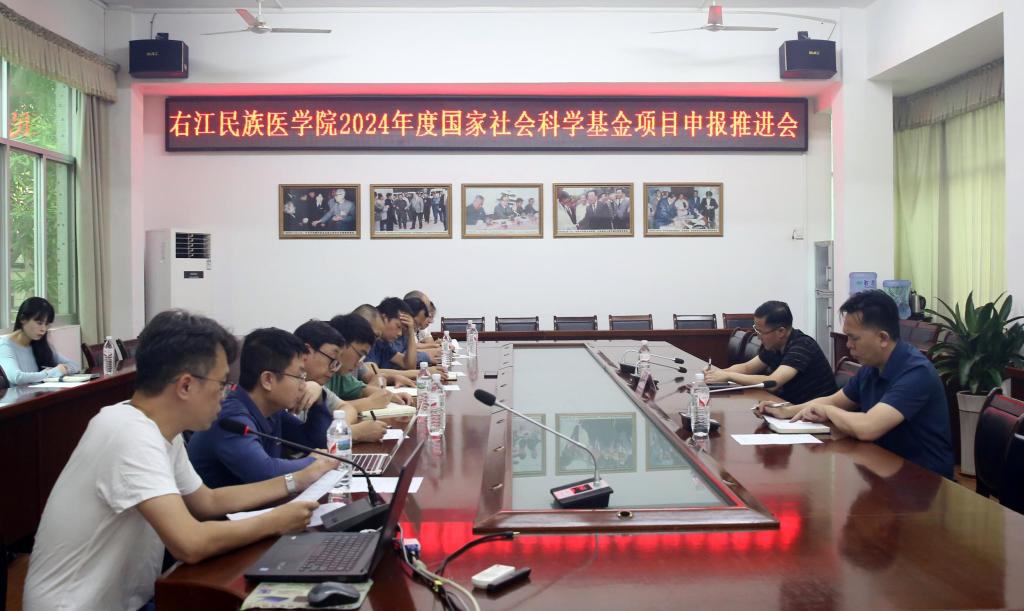 5月7日下午,必赢官网在图书馆二楼会议室召开2024年度国家社会科学基金项目申报工作推进会。校党委常委、副校长谭盛葵出席会议,科技处、党委宣传部、公共卫生与管理学院、国际语言文化教育学院、马克思主义学院、体育部相关负责人等参加会议。会议由科技处处长黄忠仕主持。