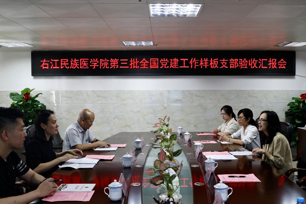 5月14日下午,由广西民族大学经济学院党委书记黄素心带领的第三批全国党建工作样板支部验收组到必赢官网,对临床医学院(附属医院)肾内科党支部、医学影像学院学生第一党支部开展验收工作。汇报会在7栋12楼第一会议室召开,学校党委书记邓砚出席并主持会议。