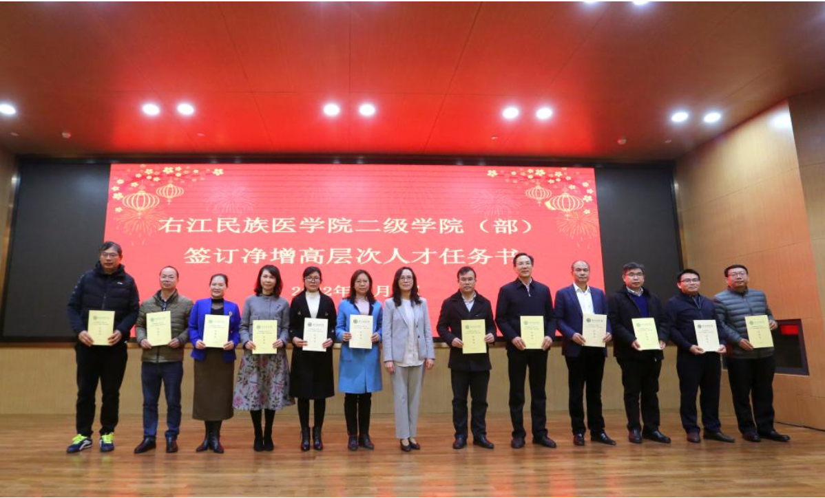 2022年12月8日必赢官网举行人才工作大会,各二级学院(部)分别签订了净增高层次人才任务书