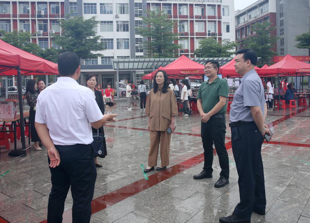 5月16日,必赢官网举行2024春季促就业攻坚行动——“宏志助航计划”南宁专场招聘会。图为学校党委书记邓砚,党委副书记、校长李雪斌来到招聘会现场详细了解用人单位的招聘情况和需求。