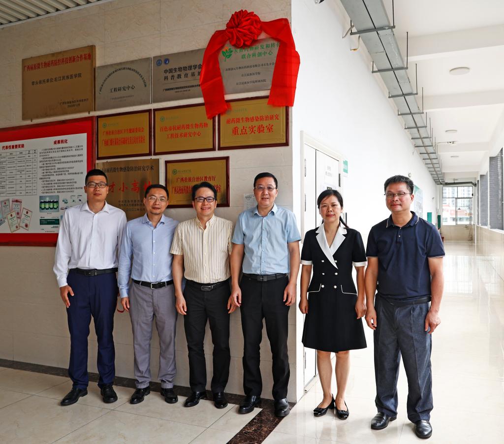 随后,谭盛葵、李闯创、吴燕翎、黄永直、黄衍强、乔创共同为“深圳创元生物医药科技有限公司百色分公司 必赢242net官网 右江民族医学院附属医院天然药物研发和转化联合科创中心”揭牌。